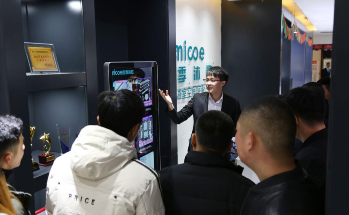 签到之后,经销商伙伴们来到四季沐歌卫浴长通家居城旗舰店参观,本次参观可谓是干货满满,科技感十足的云货架成为最大的看点。云货架是集门店虚拟出样、展示、导购于一体,为门店实现百万商品销售、智能导购以及虚拟场景打造的门店创新型工具,它将成为四季沐歌卫浴经销商提升门店销量的一大利器。